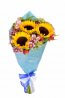 Sorprende regalando este ramo de 3 girasoles con follajes cuidadosamente seleccionados.