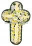 Bella Cuz sostenida en una base de madera acompañada de lilis, botones de concador y rosas.. Las flores puedes varias segun la temporada!